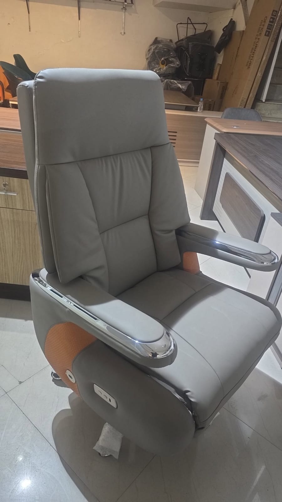 Experience next-level comfort with this premium imported electric recliner chair, designed for modern offices and luxury spaces. Upholstered in high-quality leatherette in an elegant grey finish, this chair offers a sleek and sophisticated look that enhances any workspace.