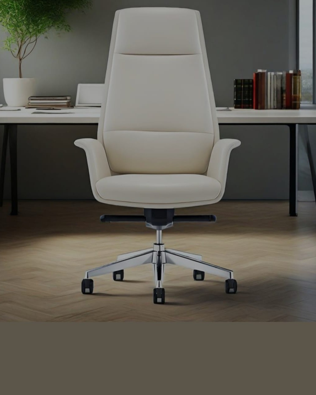 This elegant white high-back office chair combines comfort, style, and durability. The chair is upholstered in high-quality leatherette, offering a premium appearance and easy maintenance. The tall backrest supports your neck, shoulders, and lower back, making it suitable for long hours of work.
