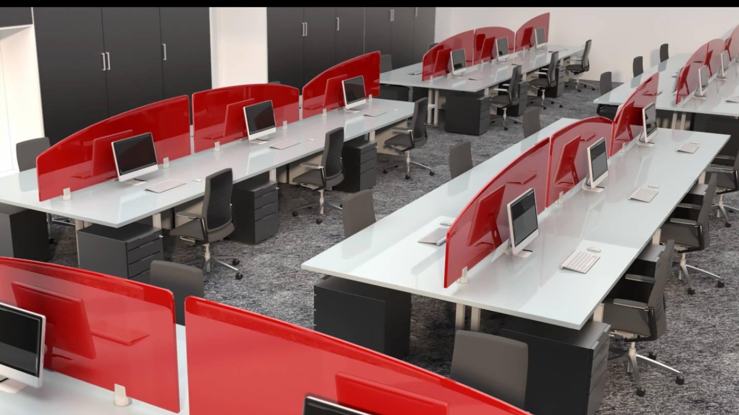 The workstation features a spacious tabletop, providing ample room for computers, documents, and office essentials. The red panels or partitions add a striking contrast while also offering privacy and a structured work setup. Its sleek design and smooth finish give it a premium, professional look suitable for offices, co-working spaces, or home setups.