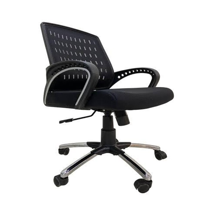 Mesh Chair Designed for modern workspaces, our Mesh Revolving Chair combines breathable comfort with ergonomic support to keep you productive and pain-free throughout the day. Key Features: ✅ Breathable Mesh Backrest High-quality mesh material allows air circulation, keeping your back cool and sweat-free even during long hours of sitting. ✅ 360° Swivel Mechanism Smooth revolving base with full 360° rotation for effortless movement and multitasking in any direction. ✅ Height Adjustable Seat Gas-lift height adjustment for optimal seat height, ensuring personalized comfort and correct desk alignment. ✅ Durable Nylon/Metal Base Sturdy base with smooth-rolling caster wheels for easy mobility on hard floors and carpets. ✅ Comfortable Seat Cushion Soft yet firm padded seat made from high-density foam ensures comfort for extended sitting sessions. ✅ Tilt Lock Mechanism Backrest tilt with locking function to recline and relax when needed. ✅ Armrest Options (Fixed) Comfortable armrests to reduce strain on shoulders and wrists – available in fixed models.
